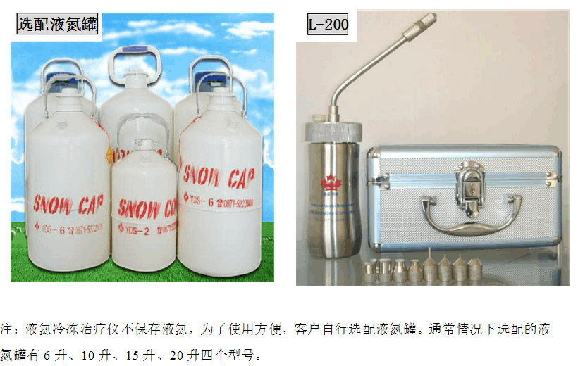 我公司生產(chǎn)的液氮冷凍治療儀(冷療儀)以液氮為制冷劑,選用品質(zhì)優(yōu)良的不銹鋼材料做主材,利用相變制冷原理,依靠液氮蒸發(fā)所形成的壓力,使液氮從液氮杯通過輸液管流入冷頭,從而達(dá)到冷凍治療的效果。冷療儀有冷凍頭、輸液管(接在蓋子上的彎管)、液氮杯、液氮杯蓋子(蓋子跟輸液管連接),通氣孔開關(guān)(蓋子上白色的突出部分),手柄六部分組成。冷療儀體積?。?50mL或300mL),重量輕,瓶體剛度好,用雙層不銹鋼瓶體,不爆裂,不銹蝕,外形美觀,結(jié)構(gòu)簡單,操作方便,制冷效力強,降溫快等特點。