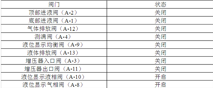 3.8.2明確除液位顯示液相閥(A-10)和液位顯示氣相閥(A-8)外所有閥都被關(guān)閉。