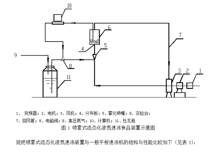 等進行速凍研究,但采用噴霧式流態(tài)化液氮速凍裝置對果蔬進行瞬時凍結(jié)的研究鮮見報道。