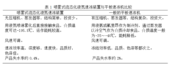 3 噴霧式流態(tài)化液氮速凍的優(yōu)點