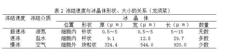 凍結(jié)速度與冰晶體形狀、大小的關系[13]