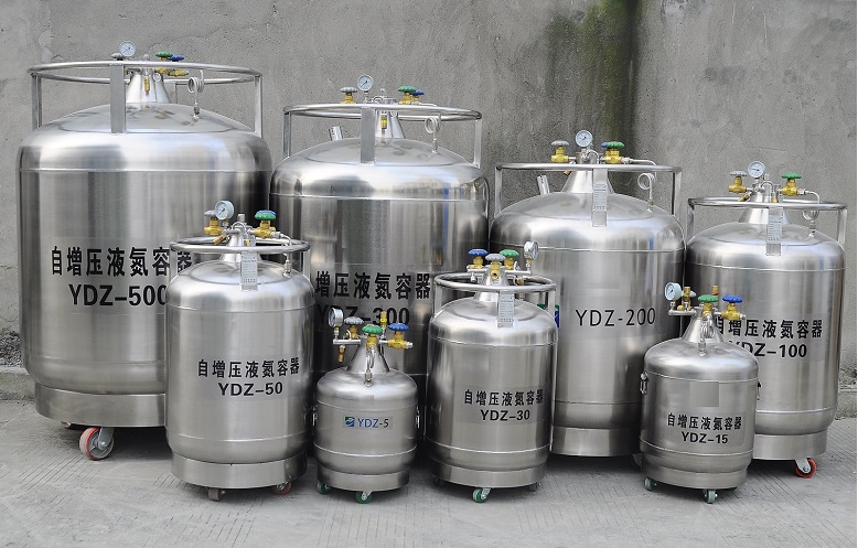自增壓式液氮容器由優(yōu)質(zhì)不銹鋼制造,利用容器內(nèi)部增壓系統(tǒng)使少量的液氮汽化產(chǎn)生壓力,將容器內(nèi)部?jī)?chǔ)存的液氮排出。自增壓式液氮容器有控制結(jié)構(gòu)和罐體組成,控制類構(gòu)件主要有進(jìn)(排)液閥、放空閥、增壓閥、安全閥、液位計(jì)、壓力表、腳輪。主要用于運(yùn)輸和儲(chǔ)存液氮,也可以作為其他制冷裝置的冷源,目前廣泛的應(yīng)用于模具行業(yè)、畜牧業(yè)、醫(yī)藥、半導(dǎo)體、食品、航空航天、軍事和低溫化工等行業(yè)和*域。
